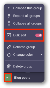 Done with bulk actions? Simply click on X in the floating bar and it will disappear, along with the checkboxes next to the items.
