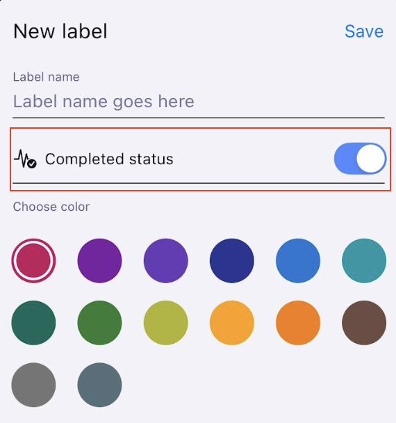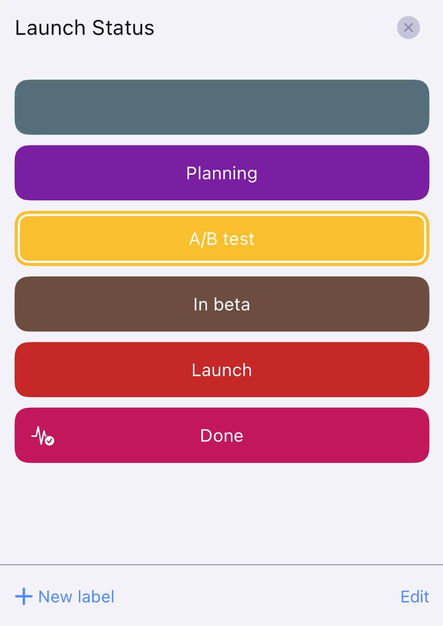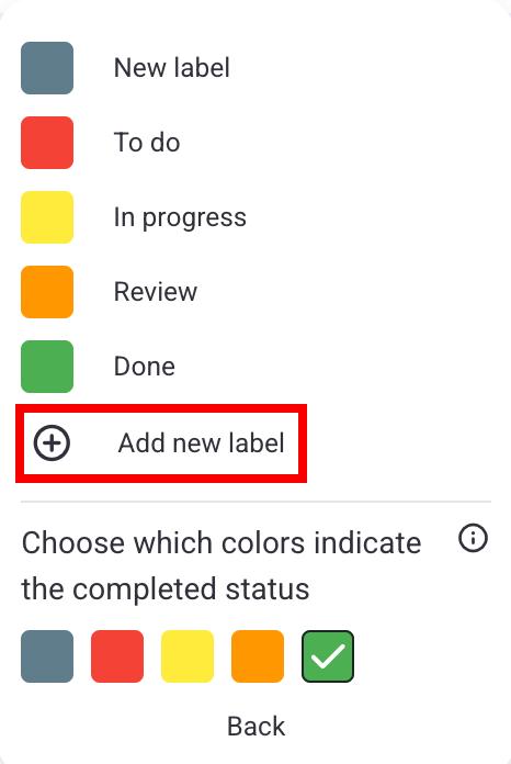 You’ve successfully customized the labels in the Board. The first label that is (gray) displayed in the list of status labels is the default one that appears when you add the Status Field.