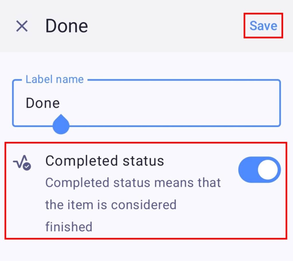 You can mark which status will be selected as completed on your board. Here’s how to do it: