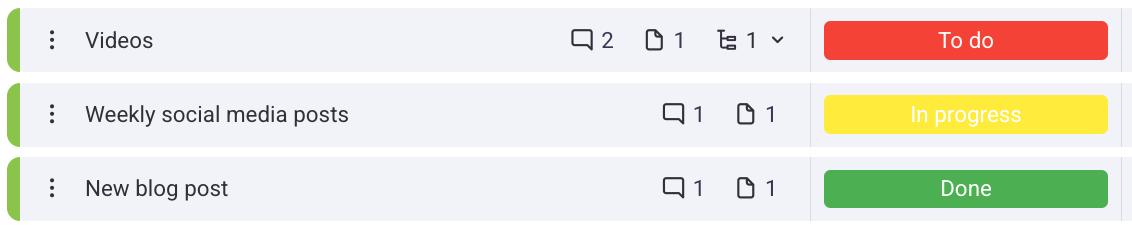 Status Field helps you and your Team Members to visually present the status of your tasks. The status is presented in form of labels marked with different colors. This way, you can easily differentiate between them and have clear insight into progress of your Team’s tasks. Plaky offers three default status stages.