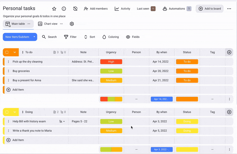 Each Board in Plaky contains entities called Items. Item can be a notion, unit or any other building part of your project that makes sense to you (e.g. task, location, client, time determinant…).