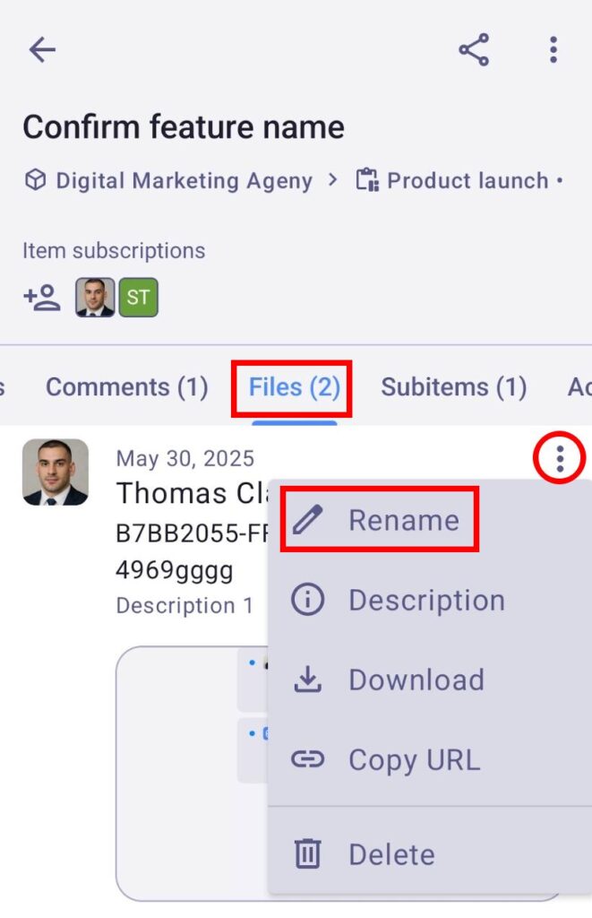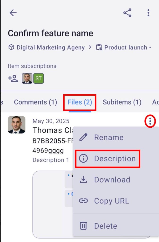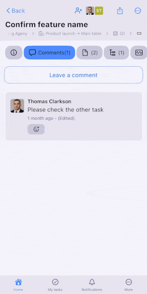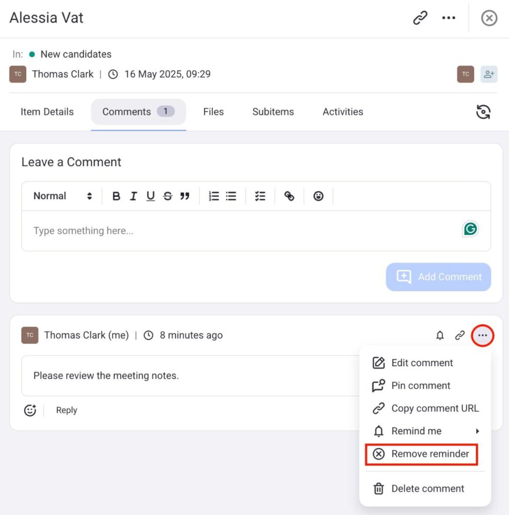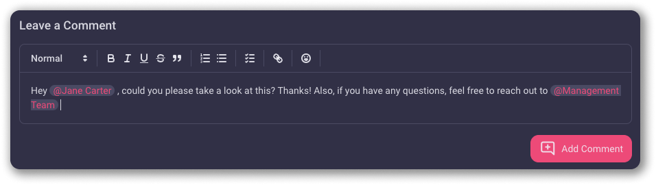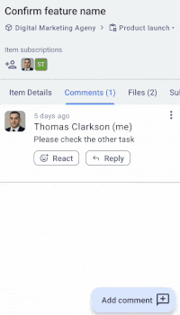 In the Item’s Comments section, you can add any additional information, mention another Team Member, or add an update relevant to the Item in question. This information is in a text format.