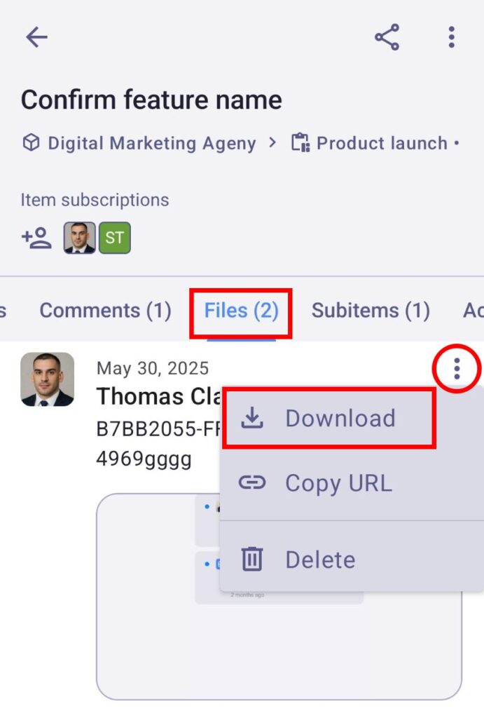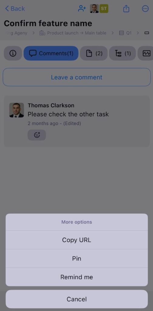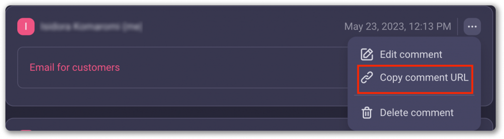 Share a link to the Item with your teammates by copying the Item URL. To copy comment URL: