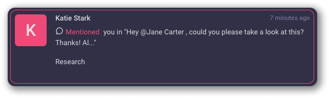 Once you’ve done that, all Team Members will get Email and Bell Notification. Both types of Notifications display the content and the link to jump to that Comment in the app.