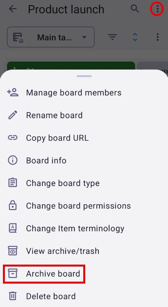 1. Tap on the three dots in the top right corner to open the Board menu