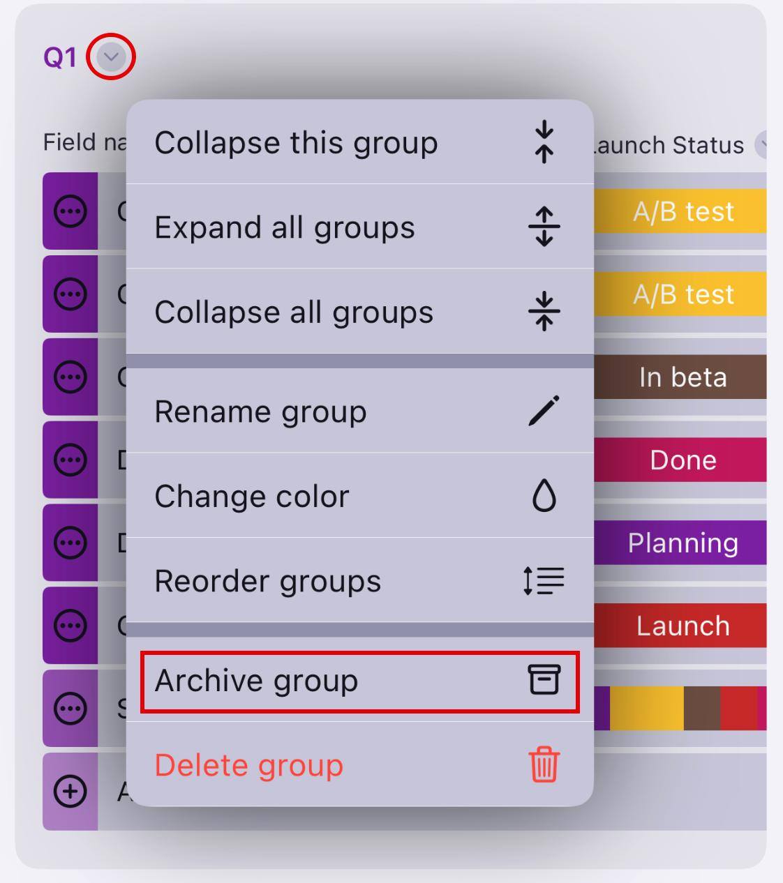 2. Select Archive group to complete the action