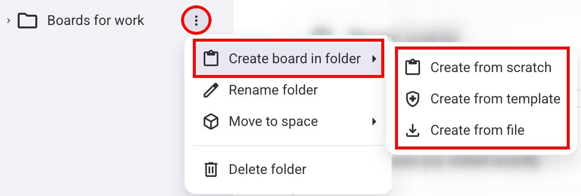 - Hover over Create Board in Folder