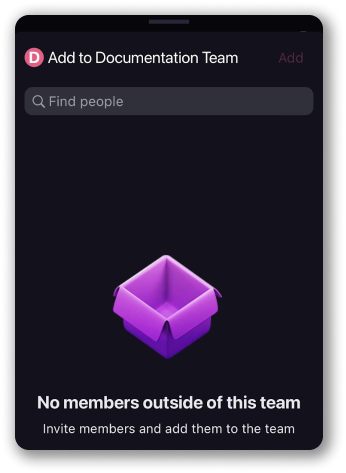 Once you created it, you can add new members that are already in your Space to the Team you created by clicking +Add team members.