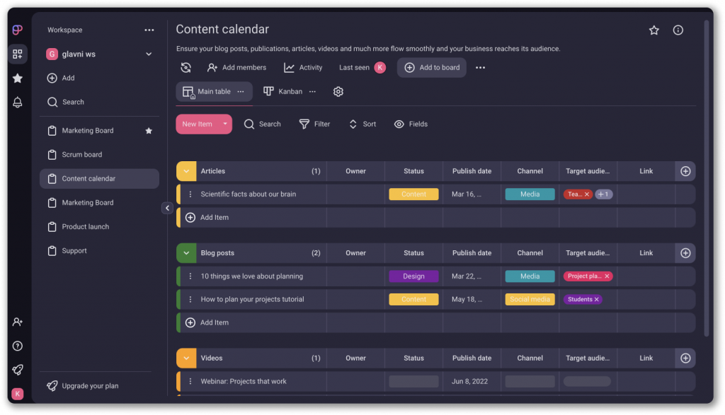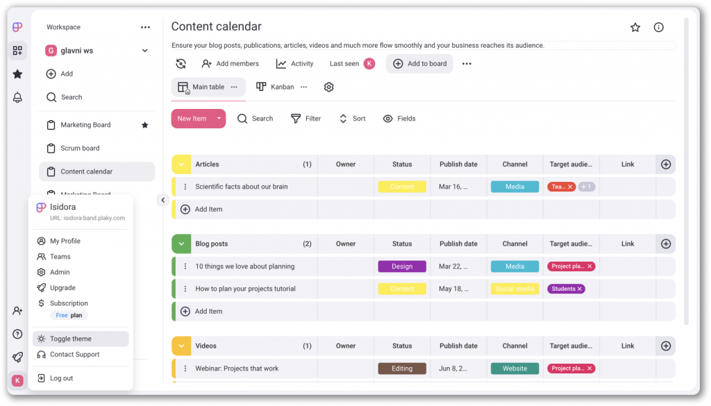 Configure the way your setup looks like in Plaky and switch between light and dark theme (the default one) according to your preferences.