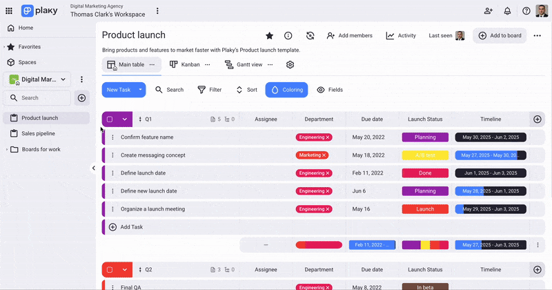 Com as ações em massa no Plaky, o gerenciamento de projetos torna-se incrivelmente eficiente e economiza tempo, sem o trabalho manual repetitivo. Basta selecionar as tarefas desejadas, escolher a ação que deseja aplicar e observar enquanto Plaky cuida do resto.