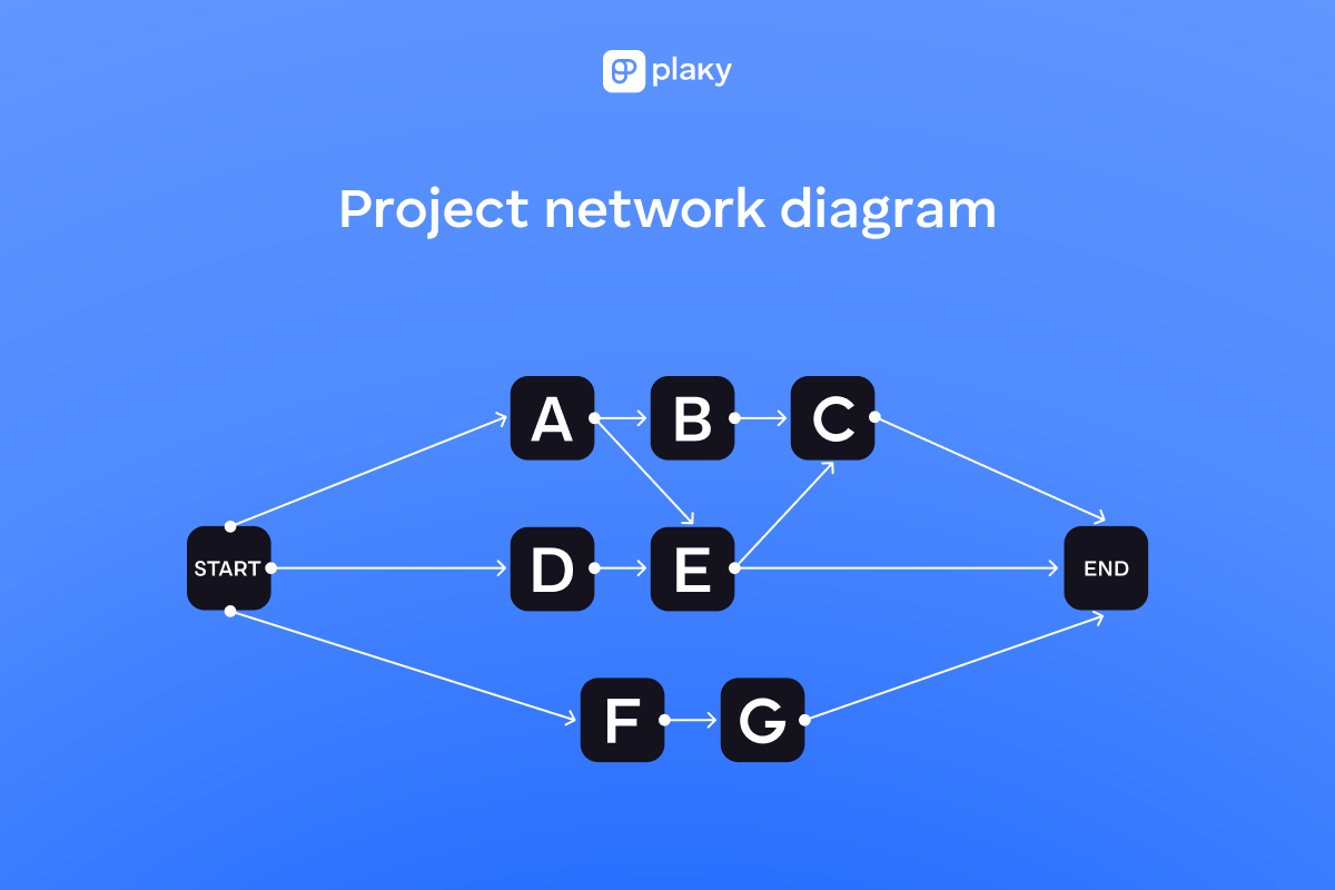 A project network diagram is made of nodes and arrows that represent activities, their relationships, and their durations.