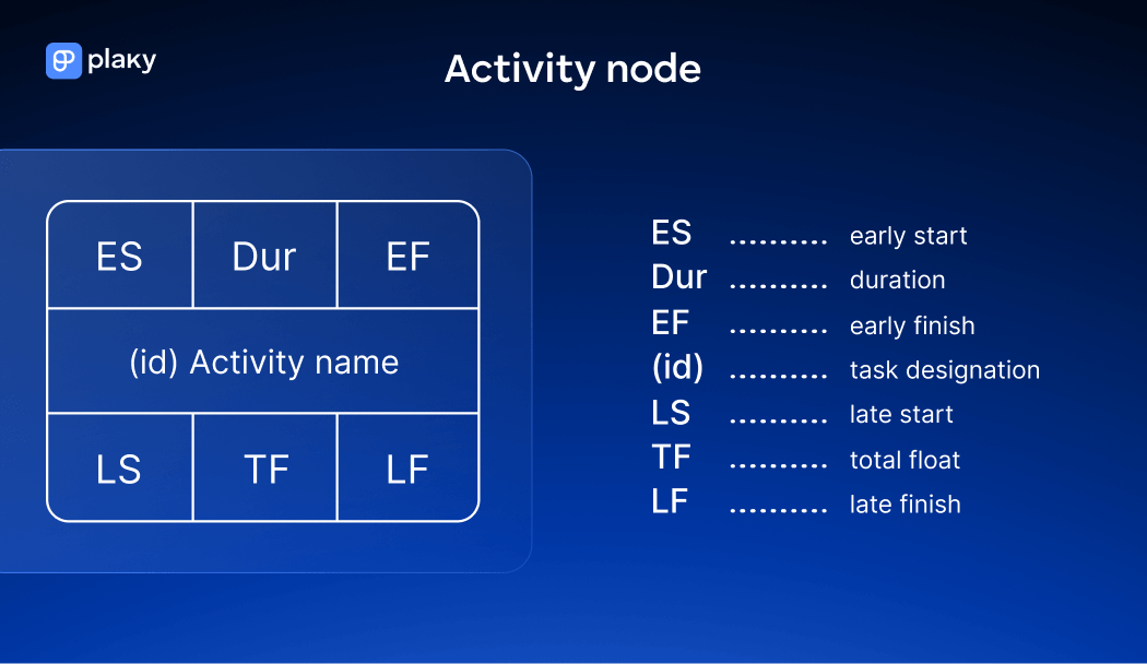 To learn how to calculate early start (ES), late start (LS), early finish (EF), and late finish (LF) — metrics that are needed for calculating float for each project task — we recommend reading out Critical Path Method guide: