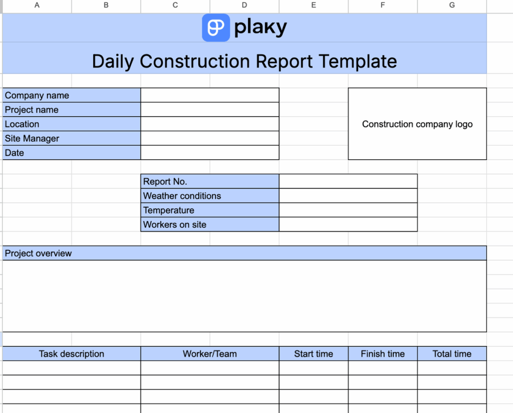 This template will provide you with a snapshot of your construction project and its day-to-day operations.