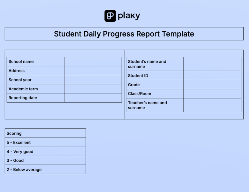 In case you need a comprehensive template you can use to follow your students’ progress on a daily basis, feel free to use our student daily progress report template.