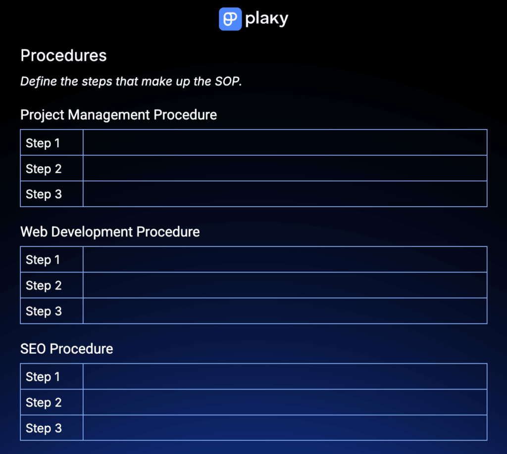 With this template, you can come up with a detailed SOP for every step of the process, including: