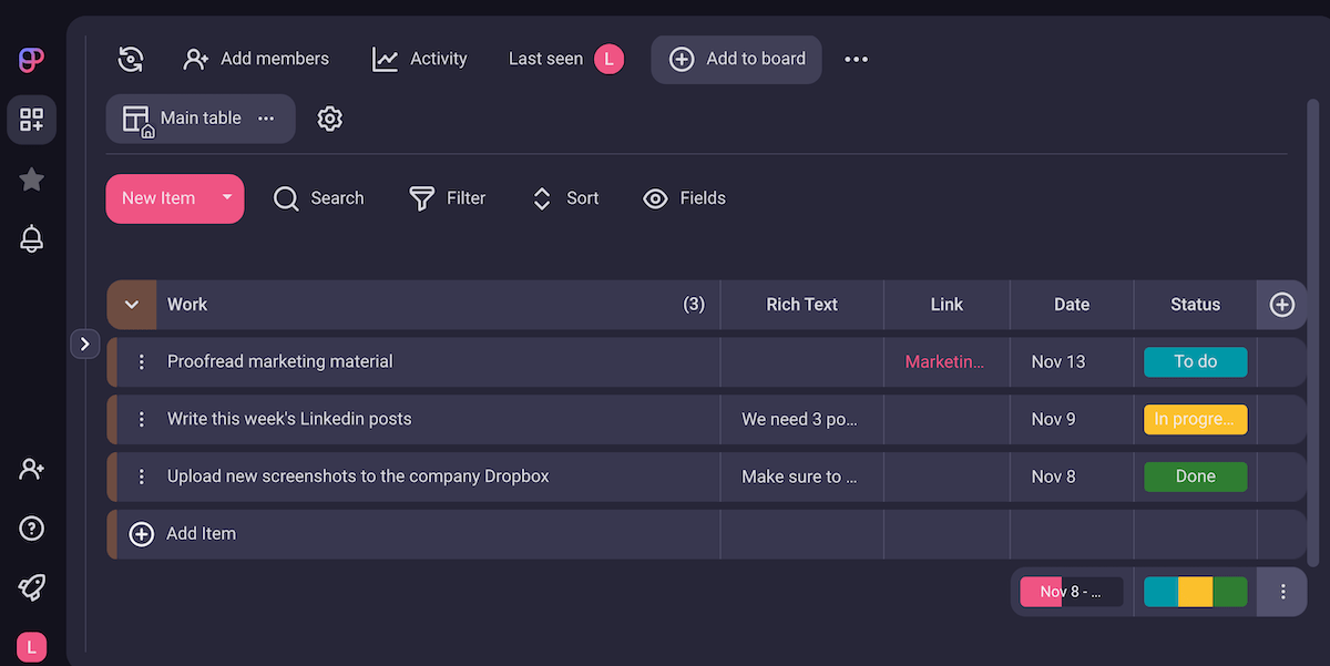 And if your list ever gets too long, you can easily search, sort, and filter the board items to pinpoint the exact tasks you should focus on.