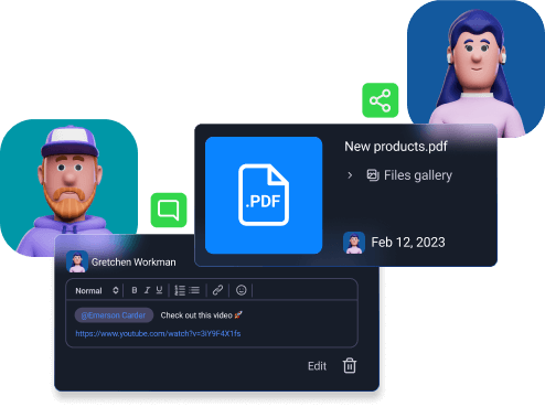 Have single source of truth for all your work. Indicate to-dos, share project related files and assign ownership.