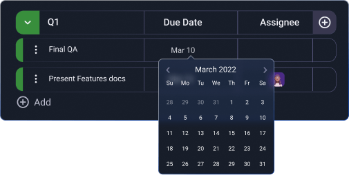 Set due dates for your time-bound projects, and track the delivery process of your tasks in an easy-to-view method.