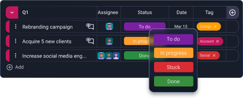 Quickly see status changes and updates on tasks. Check in on the status of your team’s work at a glance, and know what needs your attention.