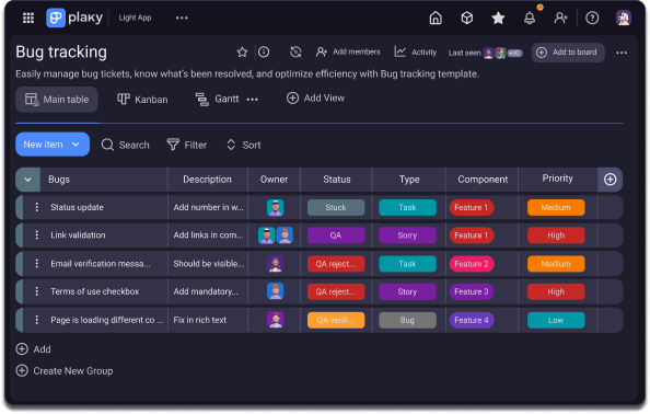 Easily manage bug tickets, know what's been resolved, and optimize efficiency with Bug tracking template.