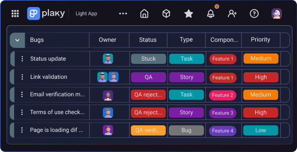 Fields in Plaky can categorize your tasks in many ways. Mark the stage, the component, the type of issue, and much more.