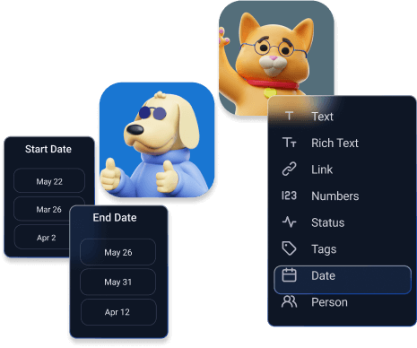 Input start and end dates as fields in the item card. Mark the duration of a task by communicating through a field type, when it must be completed.