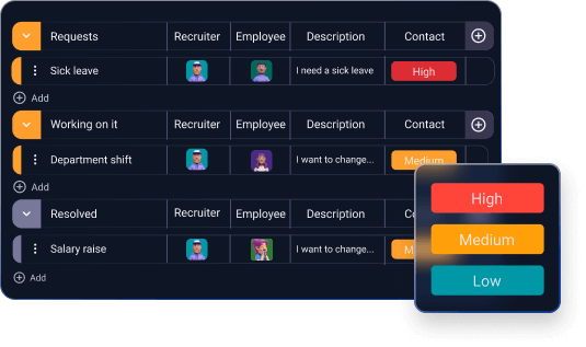 Let the people from your HR team know who is responsible and for what. Assign them to tasks and have them manage requests from start to finish in the most organized way. Track their progress and make sure requests are being resolved.