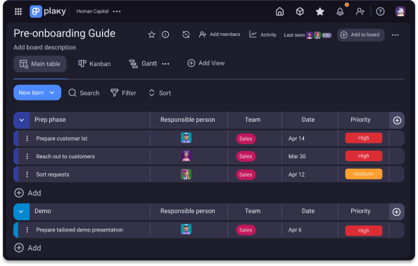Provide customers and prospects a seamless experience with the Pre-onboarding customers template.