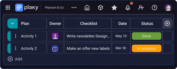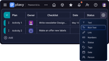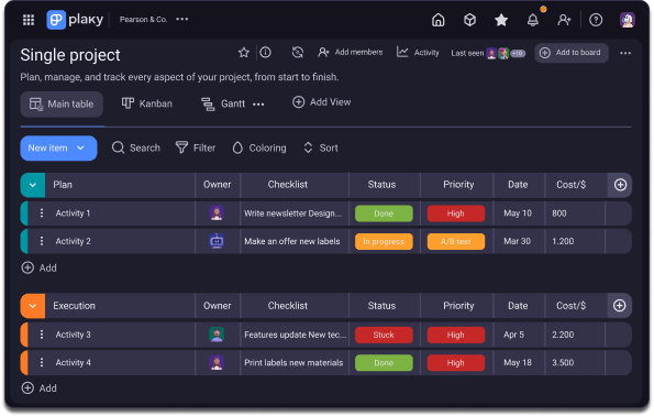 Name your board and start planning your project from start to finish in one, centralized workflow. Organize the groups of your board in phases or as a timeframe and keep track off all project-related activities in one shared place.